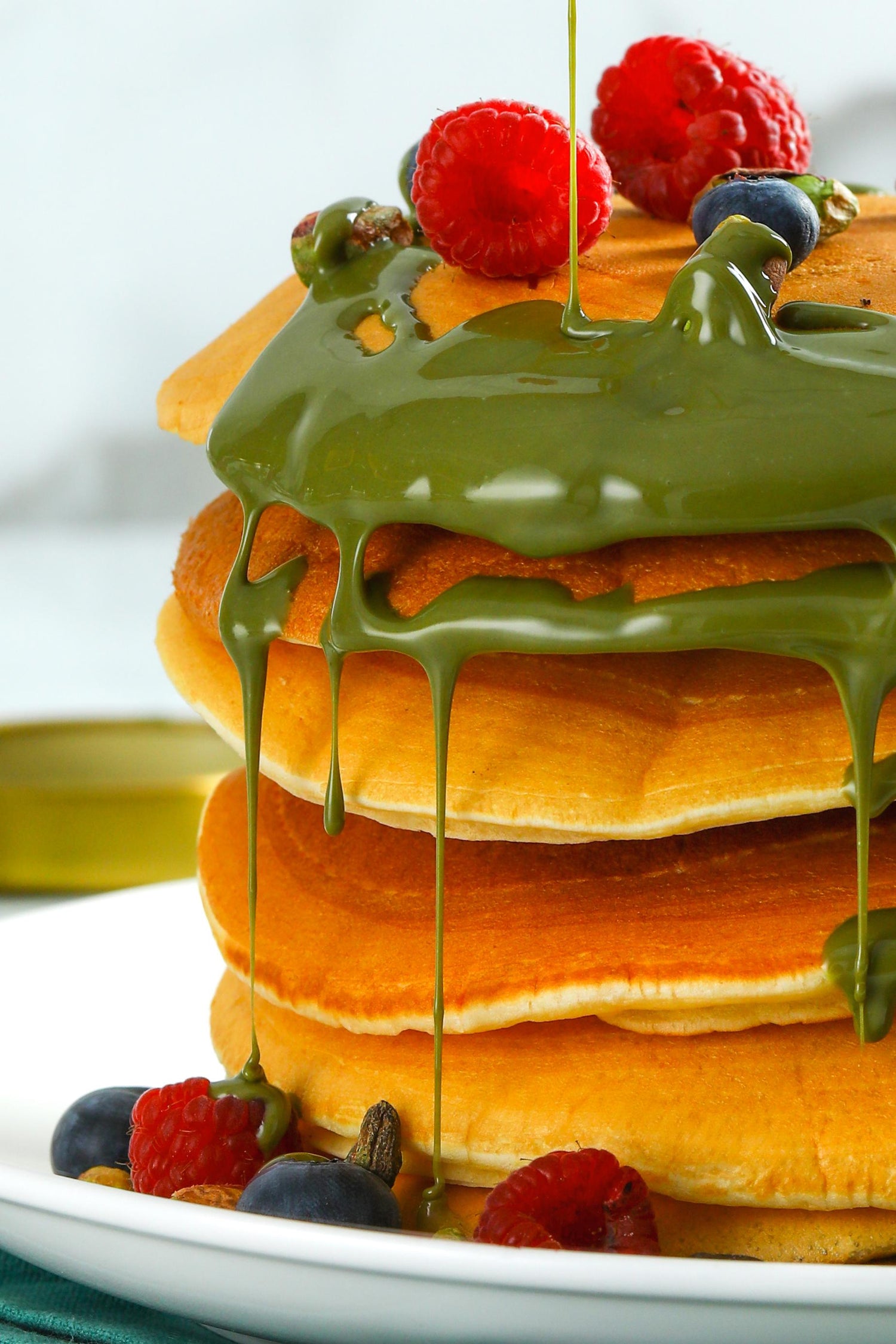 8. Heat the PISTACHINO cream in the microwave for 15 seconds and drop it on top of your pancakes!